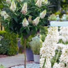 Efektowna, szczepiona na pniu Budleja Davida w odmianie o czysto białych kwiatach to prawdziwa ozdoba ogrodu, tarasu lub reprezentacyjnego wejścia do domu. Tworzy eleganckie, kwitnące „drzewko” o kulistej koronie i długich, pachnących kwiatostanach, które przyciągają motyle i pszczoły.